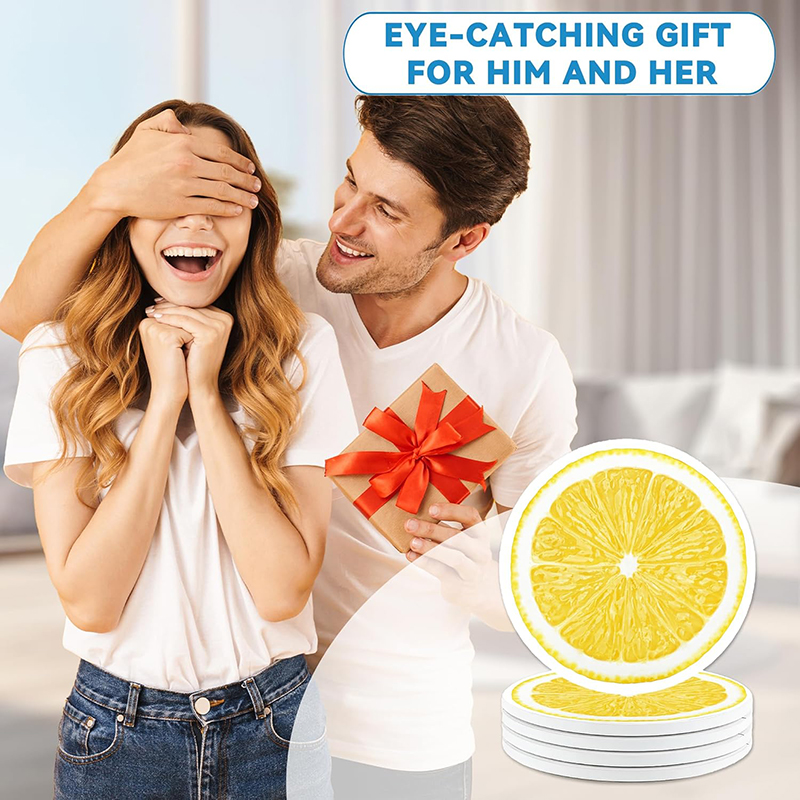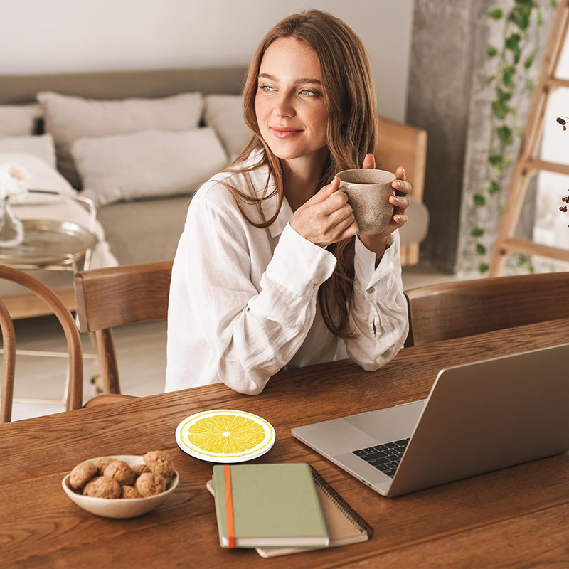 Lemonade Round 4″ Cup Coasters Absorbent Ceramic Stone Coasters with Cork Base